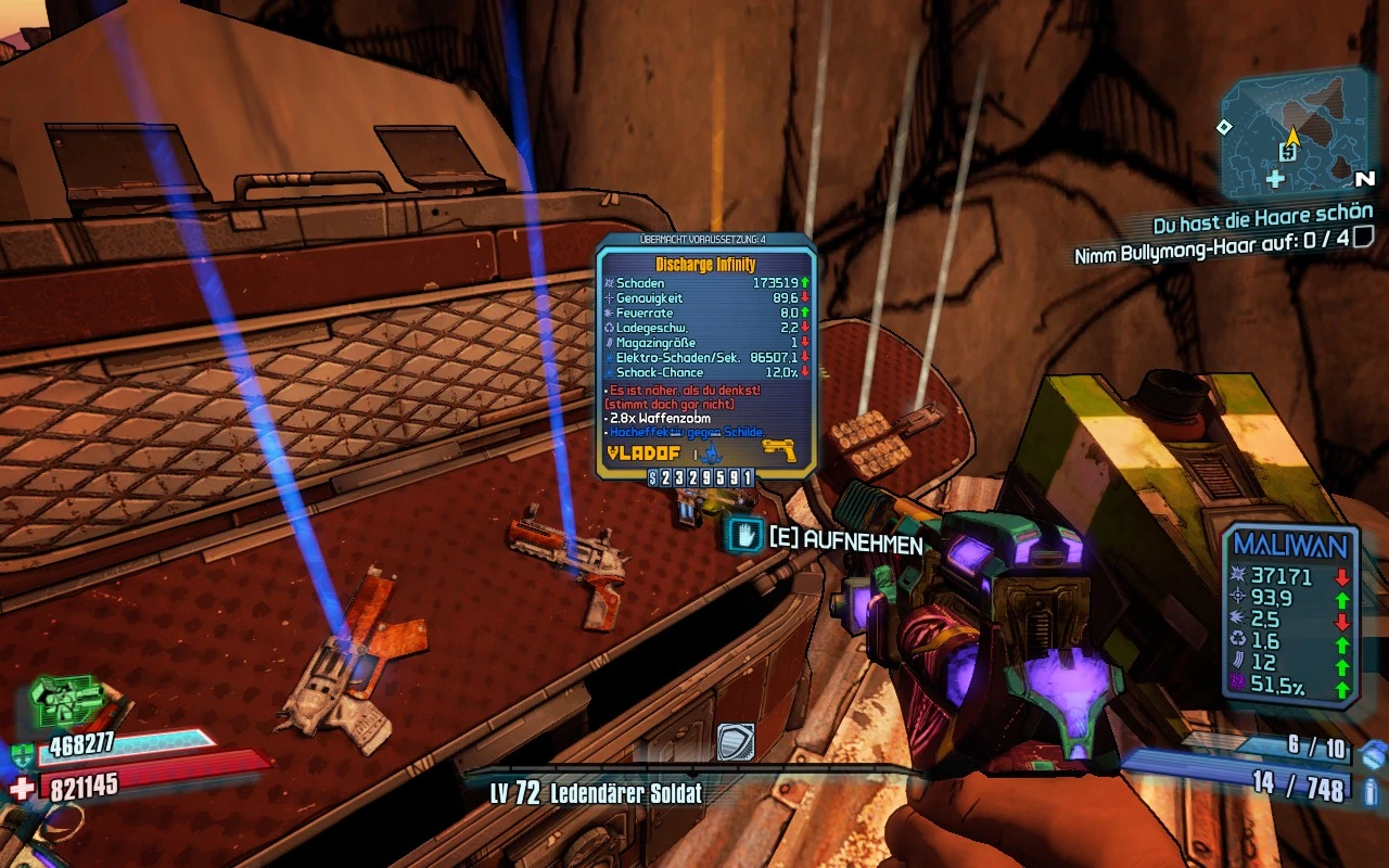 - Durch den Skill des Mechromancers Kleiner, leichter, schneller kann es passieren, das die Munitionsmenge so stark reduziert ist das der Infinity KEINE Munition im Magazin haben kann, sie wird daher nutzlos.