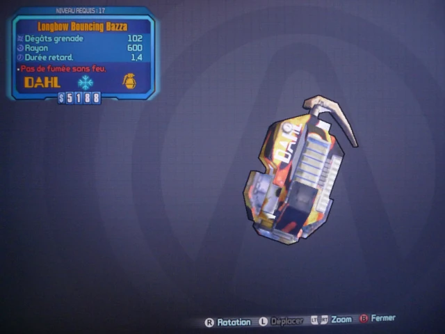 Le Bouncing Bazza est un mod de grenade légendaire, fabriqué par Dahl.