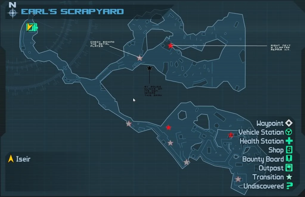 - (en) Carte interactive de Borderlands, mapgenie.io