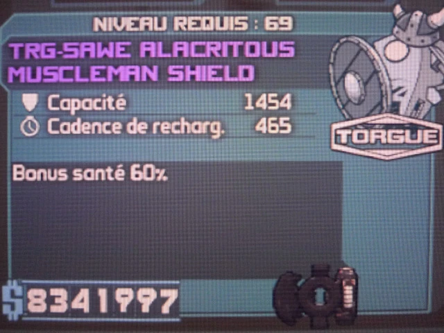 Le Muscleman Shield est un modèle de bouclier commun, fabriqué par Torgue.