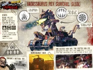 - Загривок. Бочка установлена на задней стороне шеи Безбашнезавра. Уничтожение этой бочки лишит его атаки "Ракетный залп".