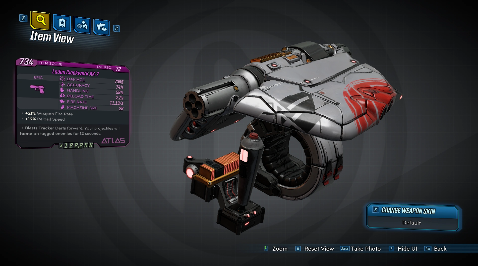 The AX-7 possesses the highest rate of fire and the second highest base damage among Atlas pistols, but is limited to firing in 4-round bursts (which can be fired constantly by holding down the trigger). Its barrel accessories aim to further improve its accuracy, potentially making the AX-7 the most accurate common Atlas pistol.