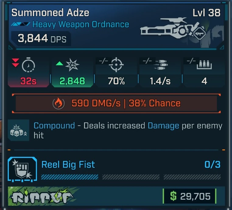 Adze is common heavy weapon ordnance in Borderlands 4 manufactured by Ripper. It is obtained randomly from any suitable loot source.