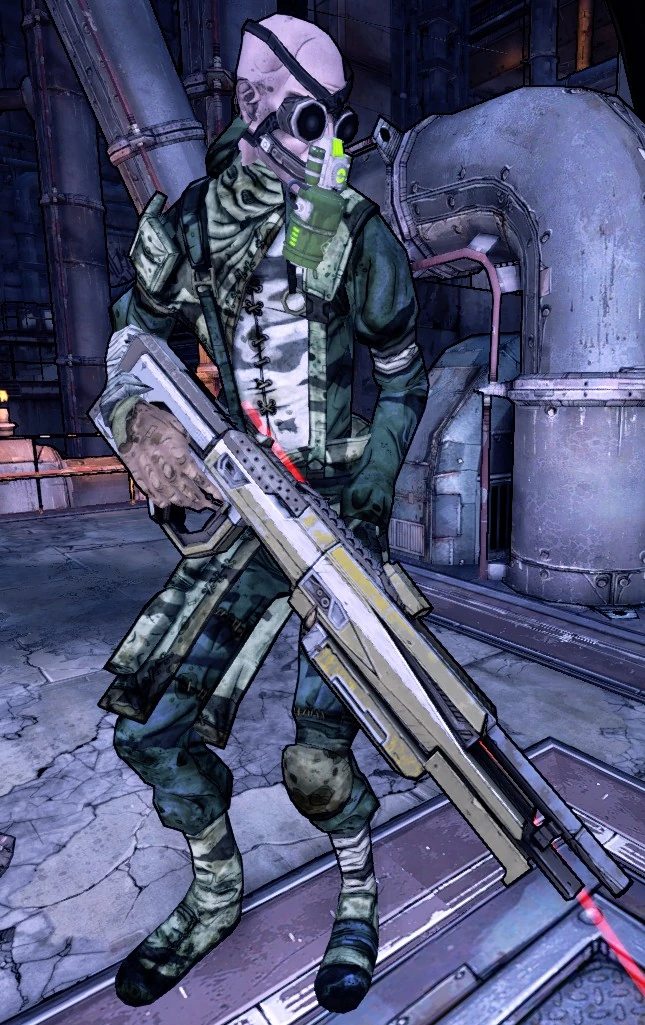 Assassin Rouf is an optional boss fought during the side mission Assassinate the Assassins. Rouf is a Rat, has a relatively weak shield and uses a shotgun with a laser sight as his weapon of choice. He appears in the company of two Nomad Taskmasters.