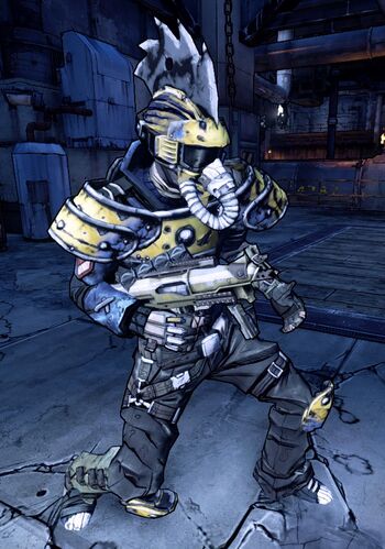Assassin Wot is an optional boss, located within Southpaw Steam & Power, fought during the side mission Assassinate the Assassins. He is a marauder who appears in the company of a Badass Psycho.