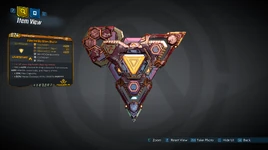 Big Boom Blaster is a legendary shield in Borderlands 3 manufactured by Pangolin. It is obtained randomly from any suitable loot source, but has an increased chance to drop from The Unstoppable located in Ambermire on Eden-6.