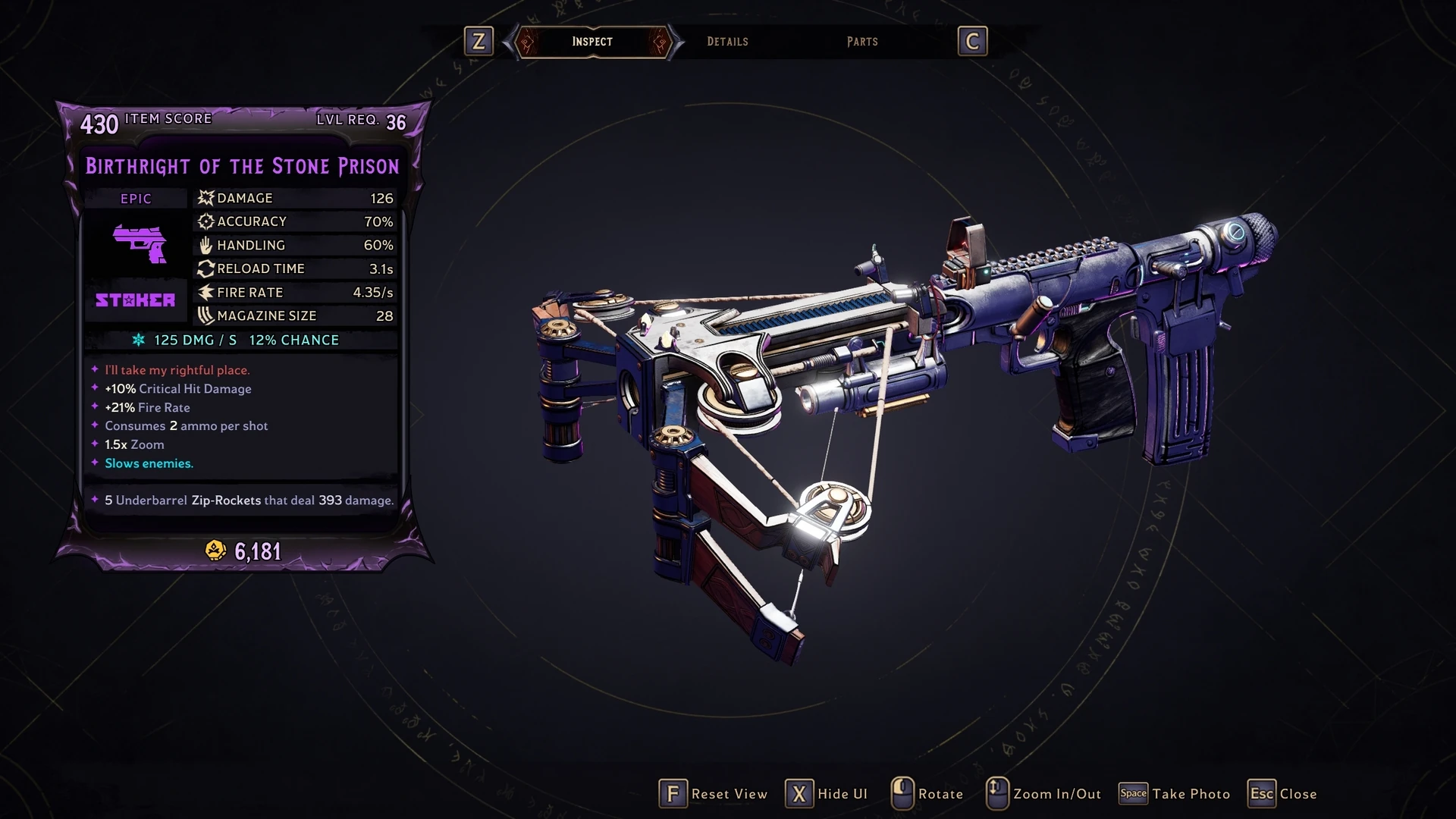I'll take my rightful place. – Fixed parts, frost only. The Birthright fires 3 bullets for the cost of 2 Ammo, that deals Frost Gun Damage. Hitting an enemy has a chance to call down a frost meteor on the target that explodes on impact, dealing 200% Frost Splash Damage to anyone. Additionally, the Birthright has a Zip-Rockets firing mode, that fires mini rockets that explode on impact, dealing Frost Splash Damage.