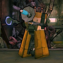 CL4P-L3K, a work robot in Borderlands: The Pre-Sequel, can be an enemy or ally based on choices in the 'Eradicate!' mission. If unharmed, it may drop the 3DD1.E oz kit. It can be respawned by activating the assembly terminal post-mission.