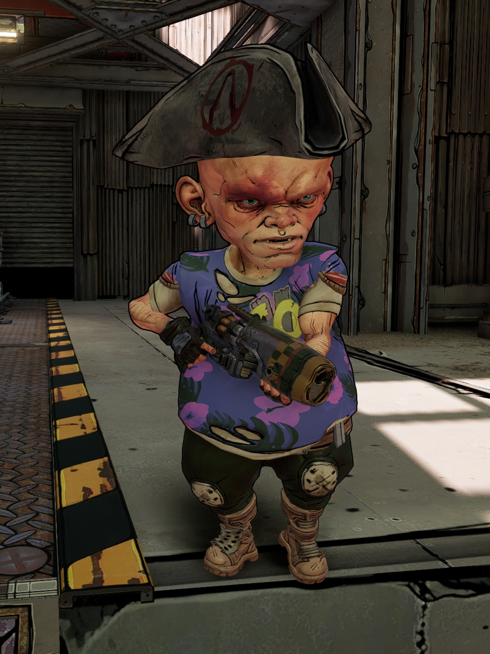 Captain Thunk, unique Hag Rider Tink, and his partner Sloth always spawn inside the Turntide Shed in Konrad's Hold. He is distinguished by wearing a colorful T-shirt and a tri-pointed hat. If launched from Sloth's cannon, he may drop his weapon and whip out a large hammer which he then either throws at Vault Hunters or use for melee attacks.