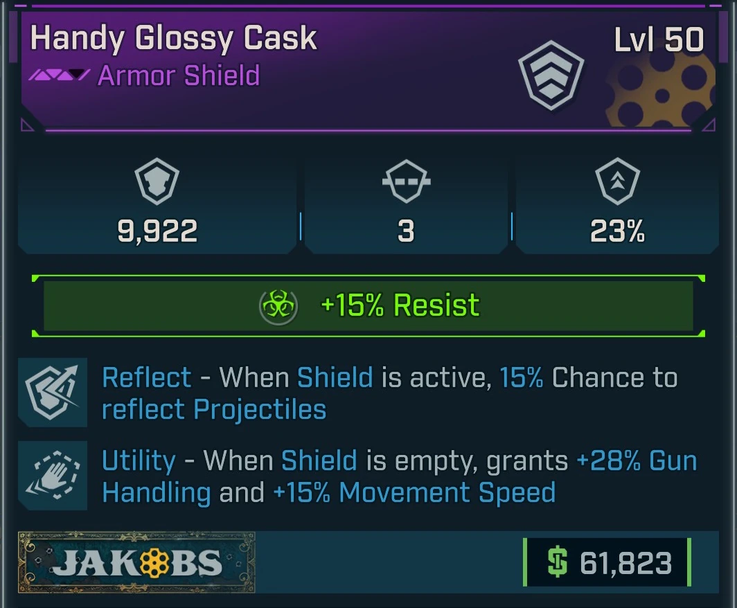 Cask is a common Armor Shield in Borderlands 4 manufactured by Jakobs. It is obtained randomly from any suitable loot source.