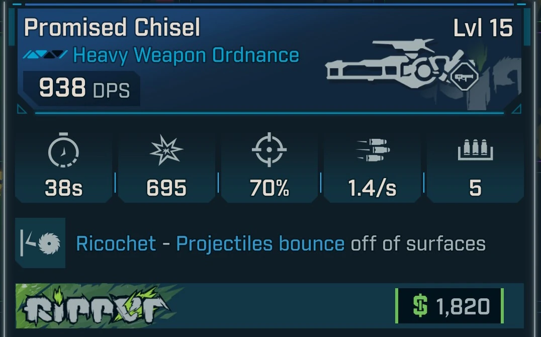 Chisel is common heavy weapon ordnance in Borderlands 4 manufactured by Ripper. It is obtained randomly from any suitable loot source.