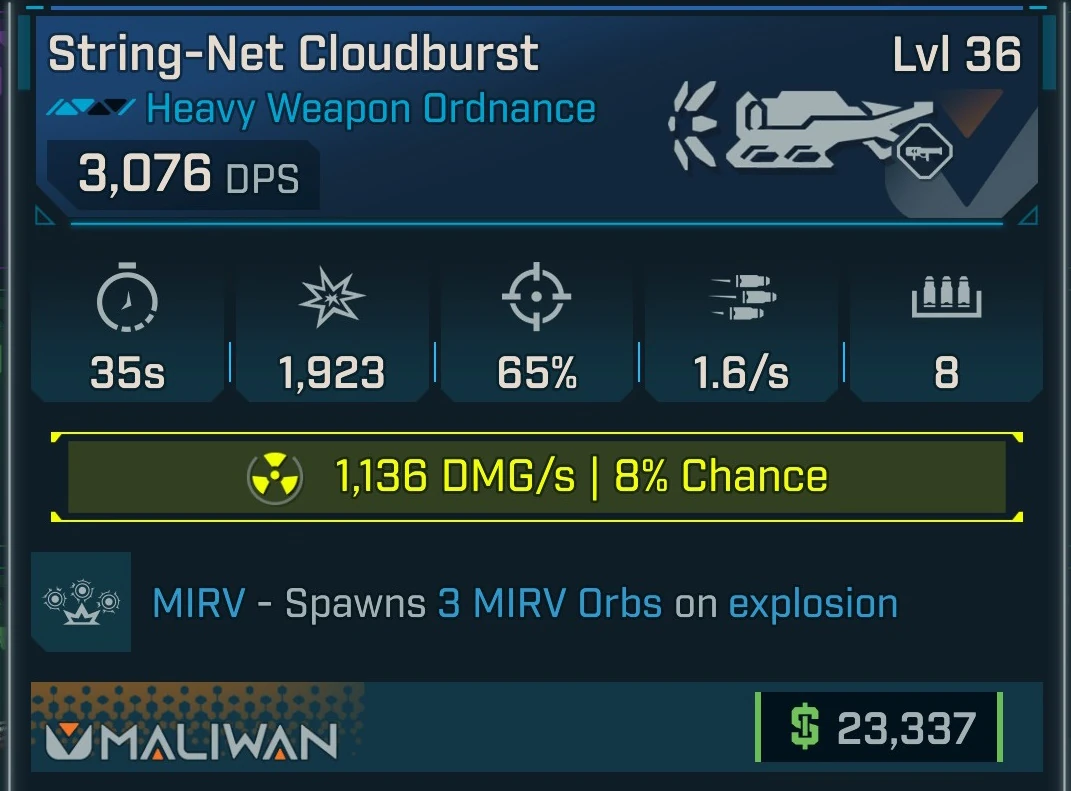 Cloudburst is common heavy weapon ordnance in Borderlands 4 manufactured by Maliwan. It is obtained randomly from any suitable loot source.