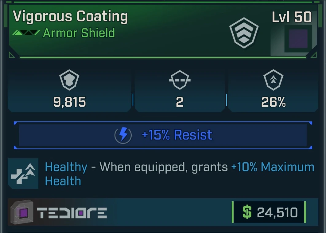 Coating is a common armor shield in Borderlands 4 manufactured by Tediore. It is obtained randomly from any suitable loot source.