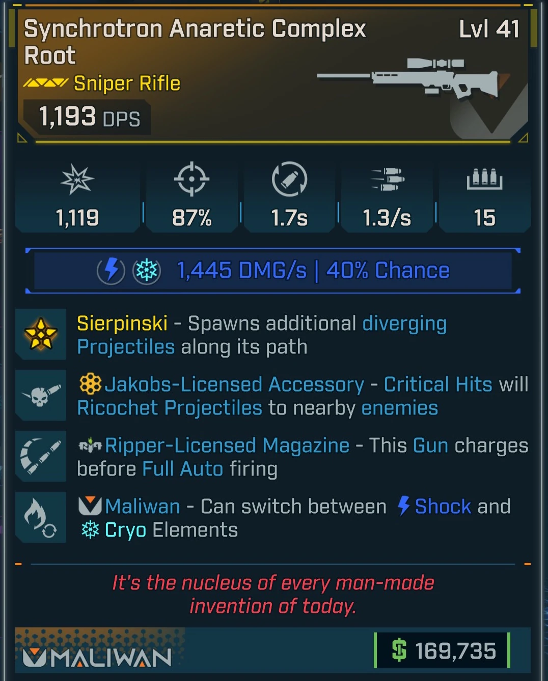 Complex Root is a legendary sniper rifle in Borderlands 4 manufactured by Maliwan. It is obtained randomly from any suitable loot source, but has an increased chance to drop from Mimicron located in Tipping Point - Order Bunker, Idolator's Noose in The Fadefields on Kairos.