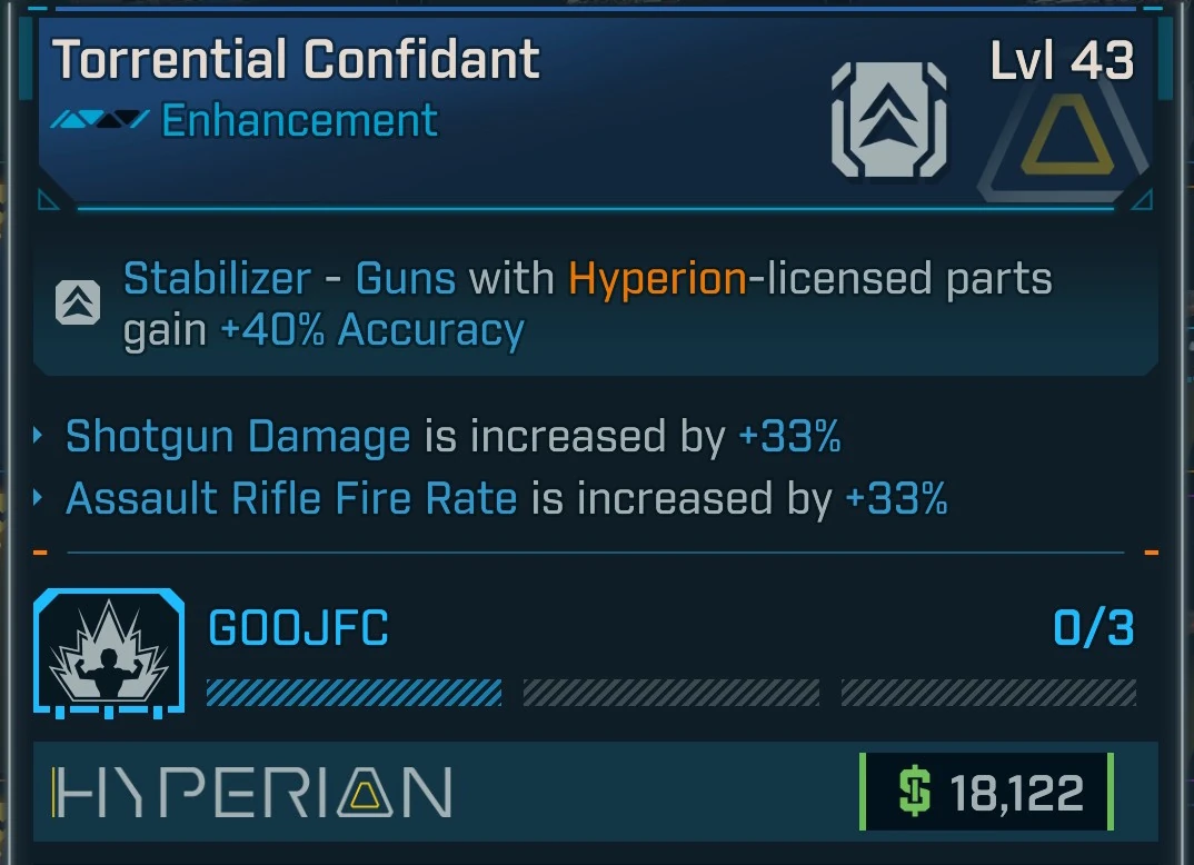 - Stabilizer – Guns with Hyperion-licensed parts gain 40% accuracy.