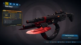 Cutsman is a legendary submachine gun in Borderlands 3 manufactured by Maliwan. It is obtained randomly from any suitable loot source, but has an increased chance to drop from Borman Nates located in Meridian Outskirts on Promethea.
