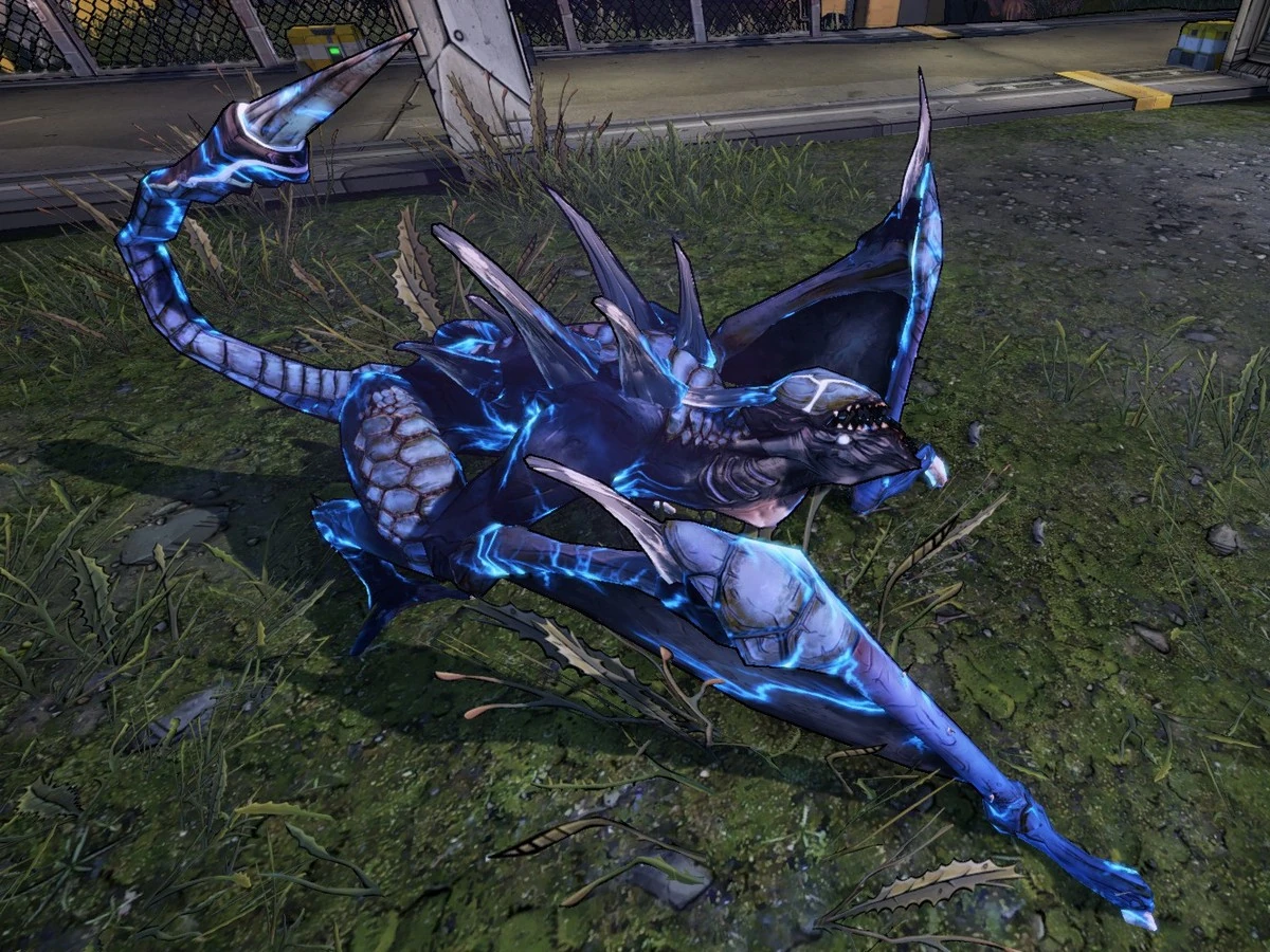 Cyclone Stalkers are named for their ability to spin rapidly while moving towards the target, dealing very heavy damage and deflecting incoming projectiles. Although they do grow spikes on their tails they do not use them for ranged attacks. Instead, they spit out tri-pointed rotating projectile which deals arguably the highest amount of damage of any standard stalker's spikes. On True Vault Hunter Mode, they become elementally charged with shock. Oddly, they do not become resistant to shock damage.