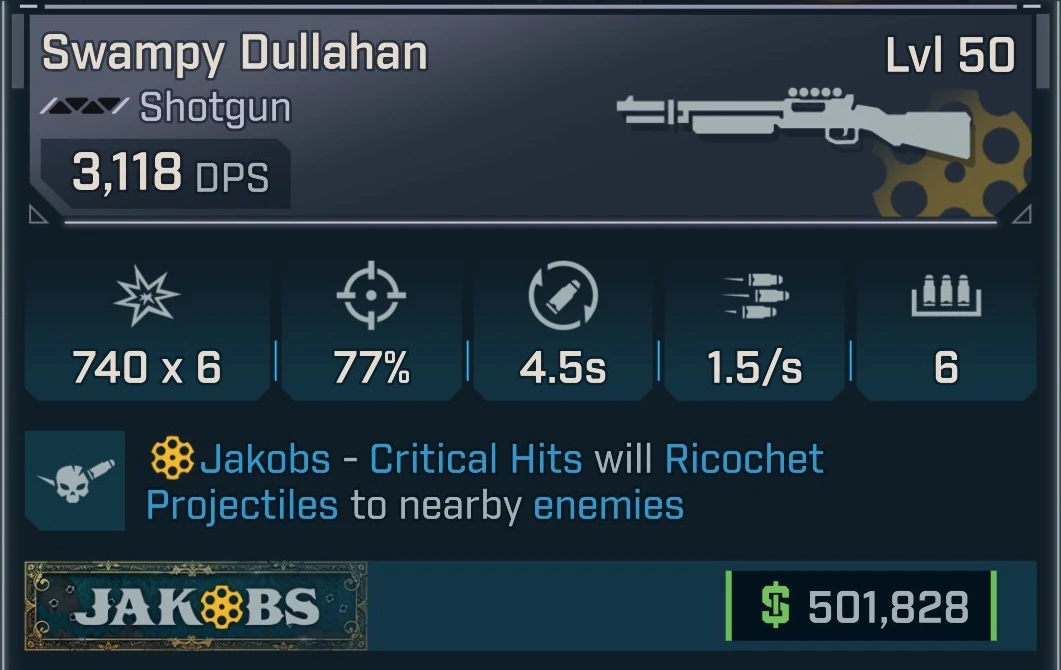 Dullahan is a common shotgun in Borderlands 4 manufactured by Jakobs. It is obtained randomly from any suitable loot source.
