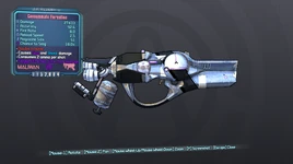 The Florentine behaves similarly to a Maliwan Plasma Caster, firing large elemental projectiles which on impact do bonus splash damage equal to 50% of the listed projectile damage. In the case of the Florentine, the projectiles themselves are shock, while the bonus splash damage is slag. This combination of a relatively neutral element joined with a built-in slag effect is remarkably potent, especially in Ultimate Vault Hunter Mode where damage boosts from slag are much higher.