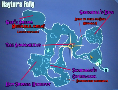 Master Gee's Arena is a sealed-off area located in the northwest portion of Hayter's Folly. It becomes accessible once the Master Gee the Invincible mission has been accepted.