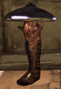Inside the basement there is a vaguely tree-shaped pile of greenish junk decorated with grenades. There is also a macabre version of the leg lamp from the classic movie "A Christmas Story", complete with its own personal shield. Surrounding the 'Christmas tree' are a number of presents, including several chests and two weapon crates, one of which is guaranteed to contain a Gearbox manufactured weapon called the Rider. The red Flavor Text in the Stat Box for this weapon warns, "Careful...you might put someone's eye out." This is another reference to "A Christmas Story", in which Ralphie, the main character, asks for a Red Ryder BB gun for Christmas, only to be told by all the adults he mentions it to that, "You'll shoot your eye out!"