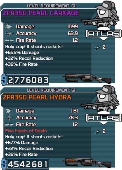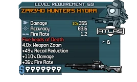 - This weapon reappears in the Borderlands 2 DLC Sir Hammerlock's Big Game Hunt. However, since the Atlas Corporation is no longer present in Borderlands 2, the newer Hydra is instead manufactured by Jakobs.