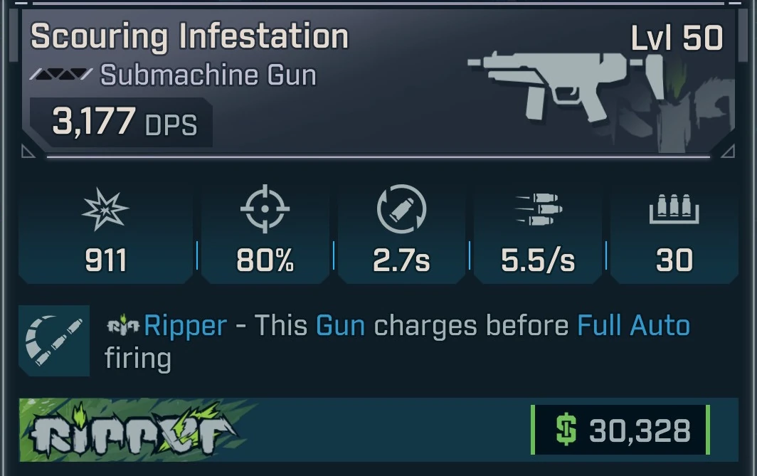 Infestation is a common submachine gun in Borderlands 4 manufactured by Ripper. It is obtained randomly from any suitable loot source.