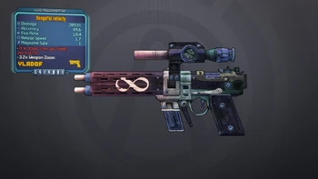 The Infinity has the same effect as the original Borderlands repeater pistol The Dove.