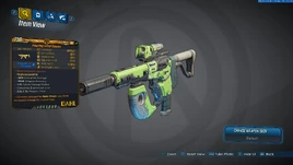 Kaoson is a legendary submachine gun in Borderlands 3 manufactured by Dahl. It can only be obtained from Captain Traunt at Mayhem 6 or higher.