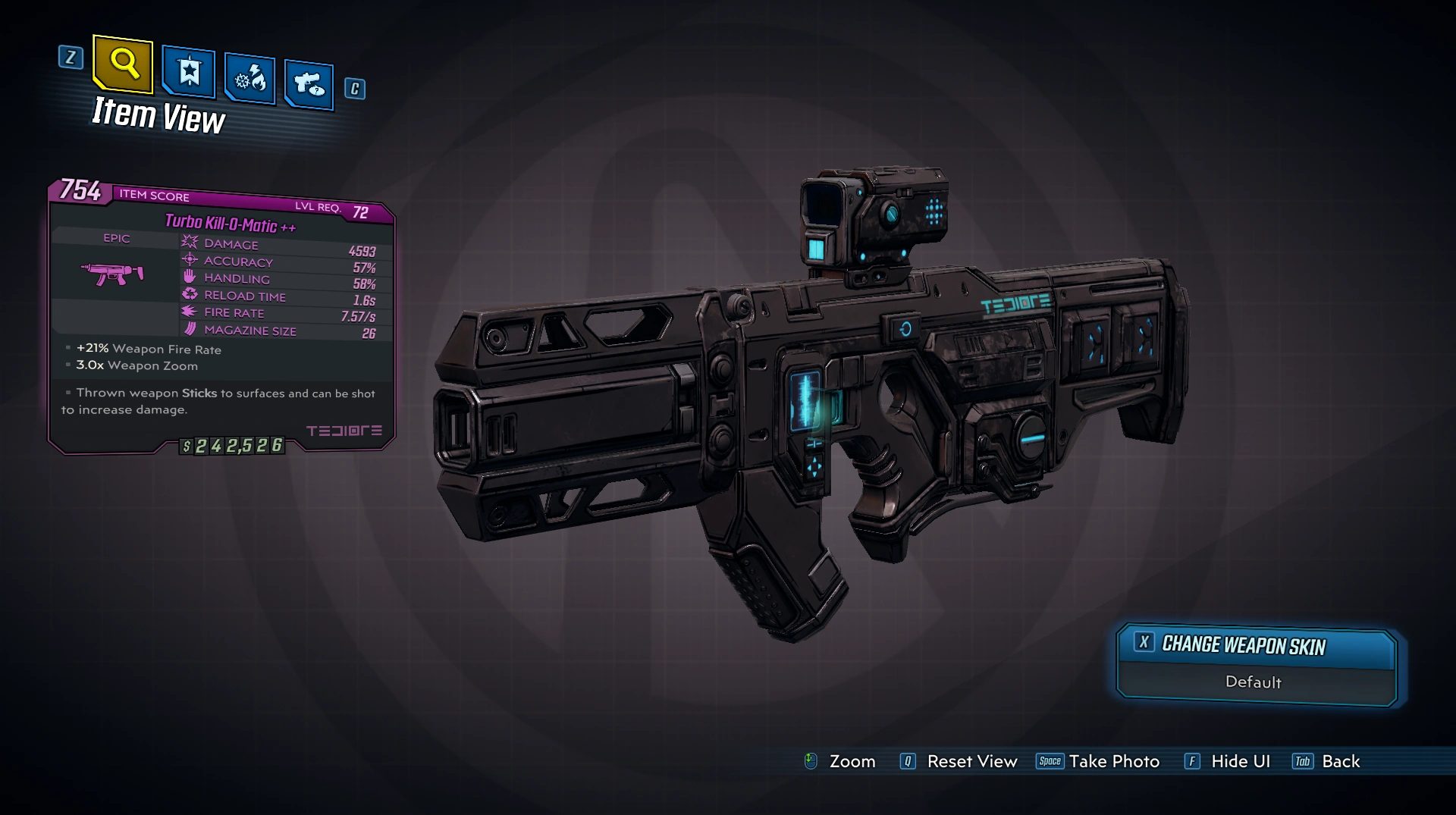 Kill-O-Matic is the power variant of Tediore SMG, featuring higher damage but slower fire rate. They boast the highest pure damage per shot than all other SMGs.