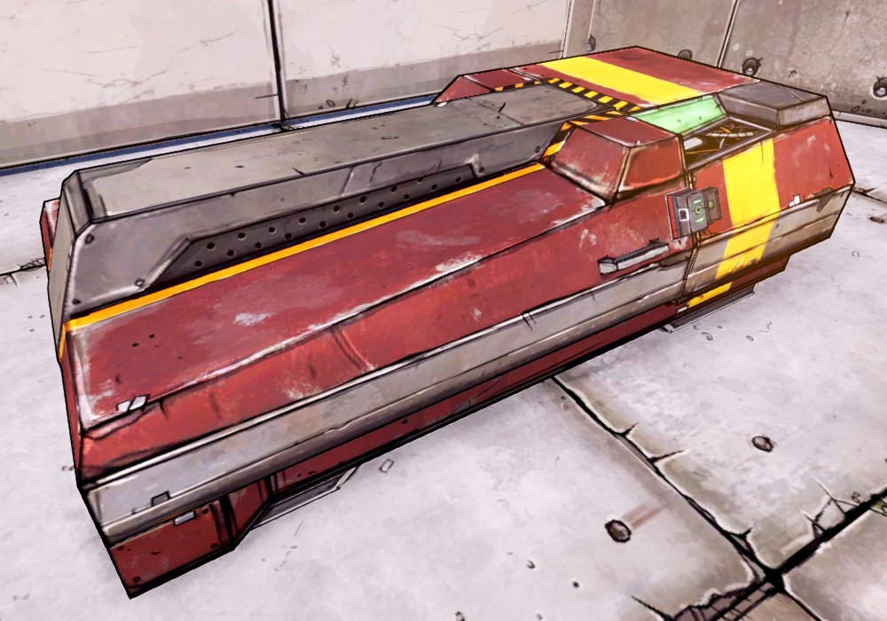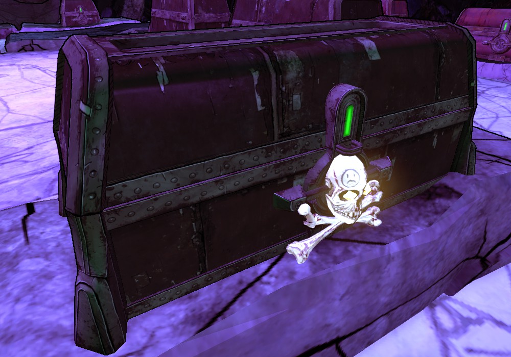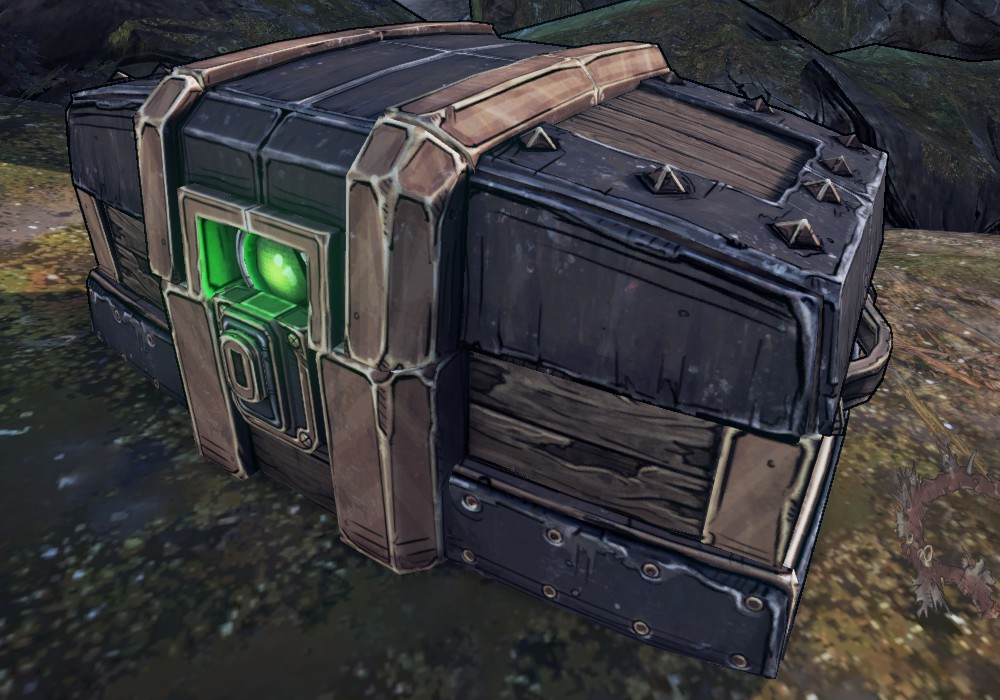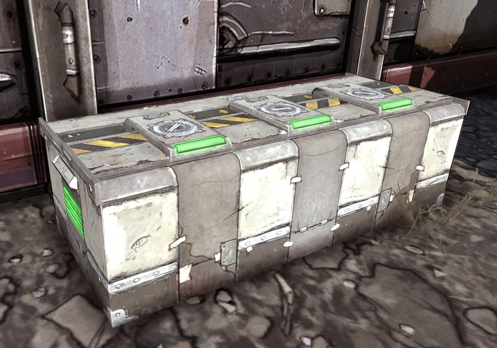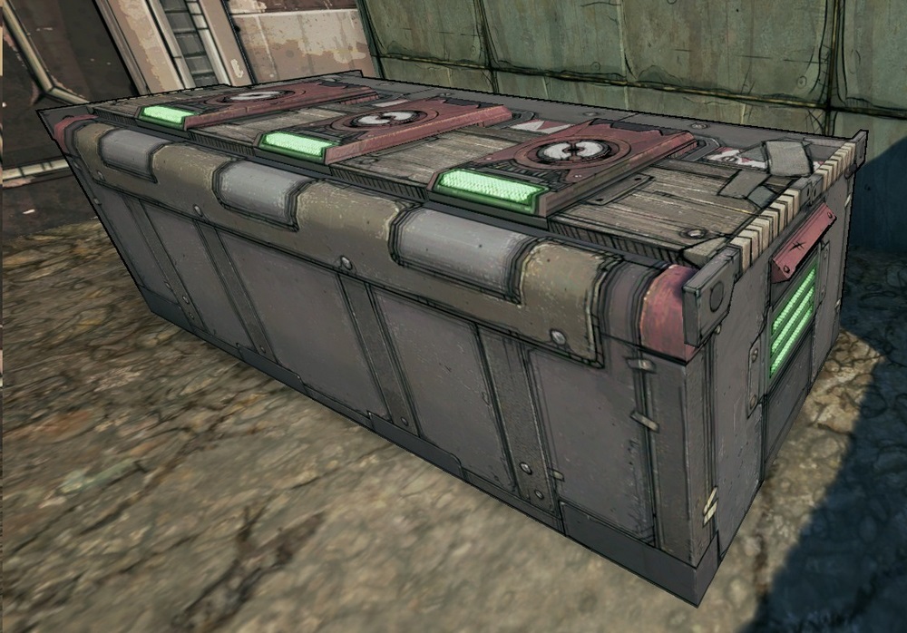 Once a common sight in Borderlands, these large, red, slightly oval-shaped supply chests are an infrequent sight in Borderlands 2. This chest has an increased chance of spawning high-rated gear ranging from white to pearlescent. It can also contain money and Eridium.