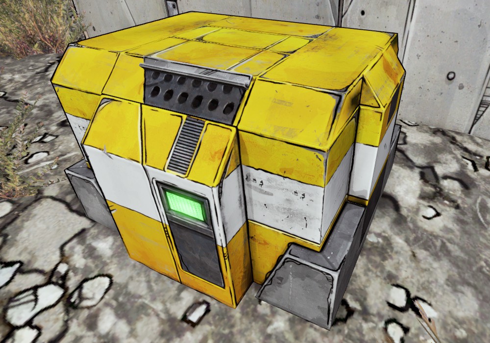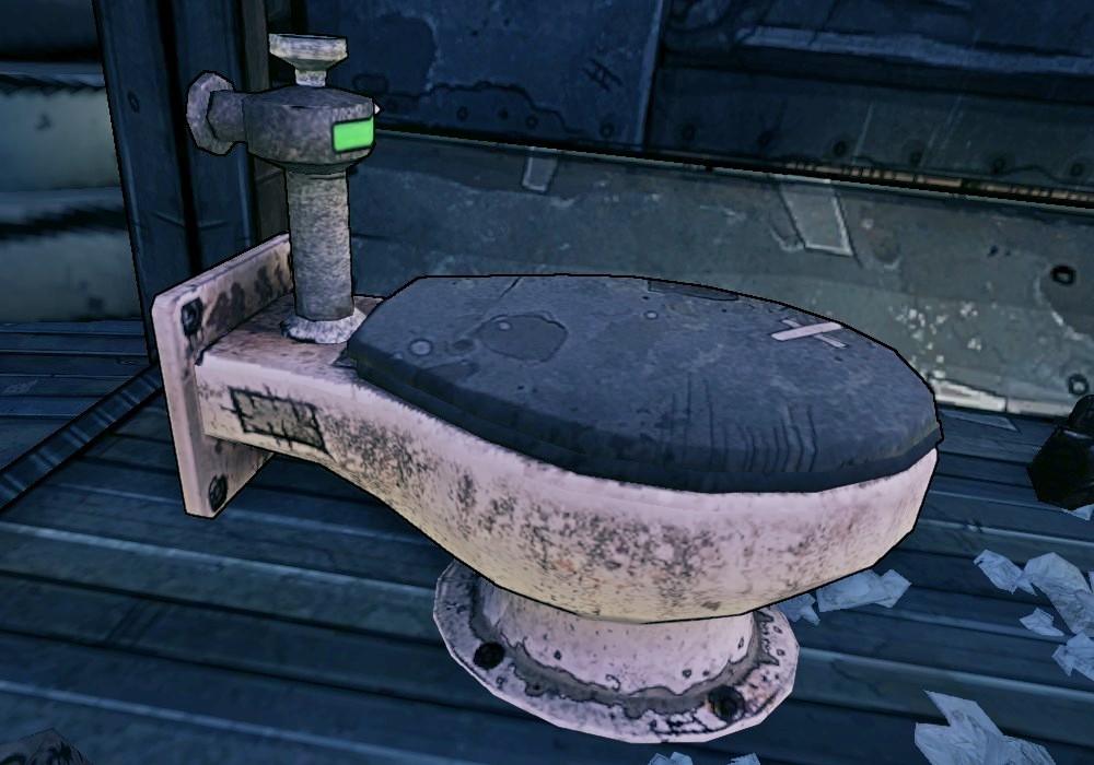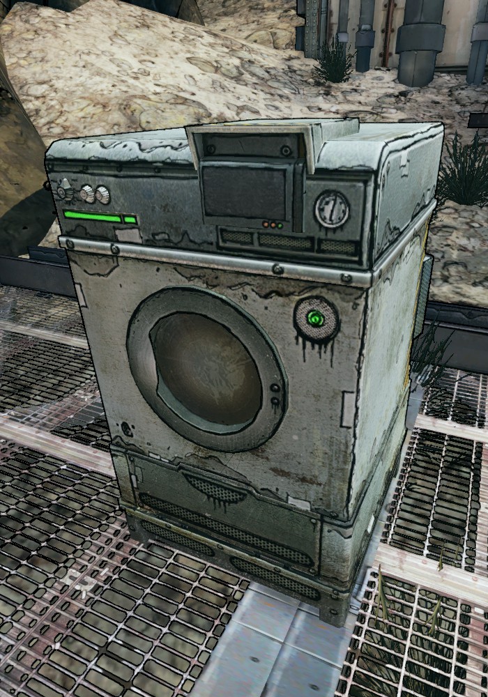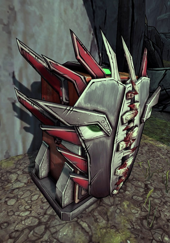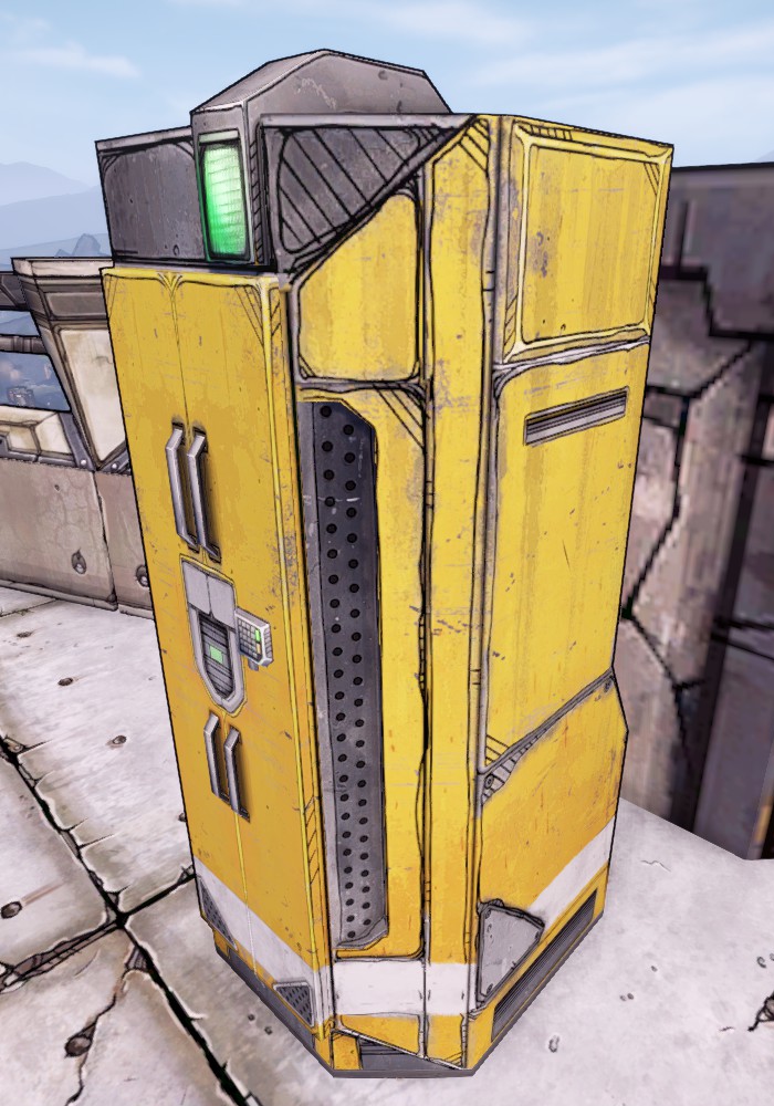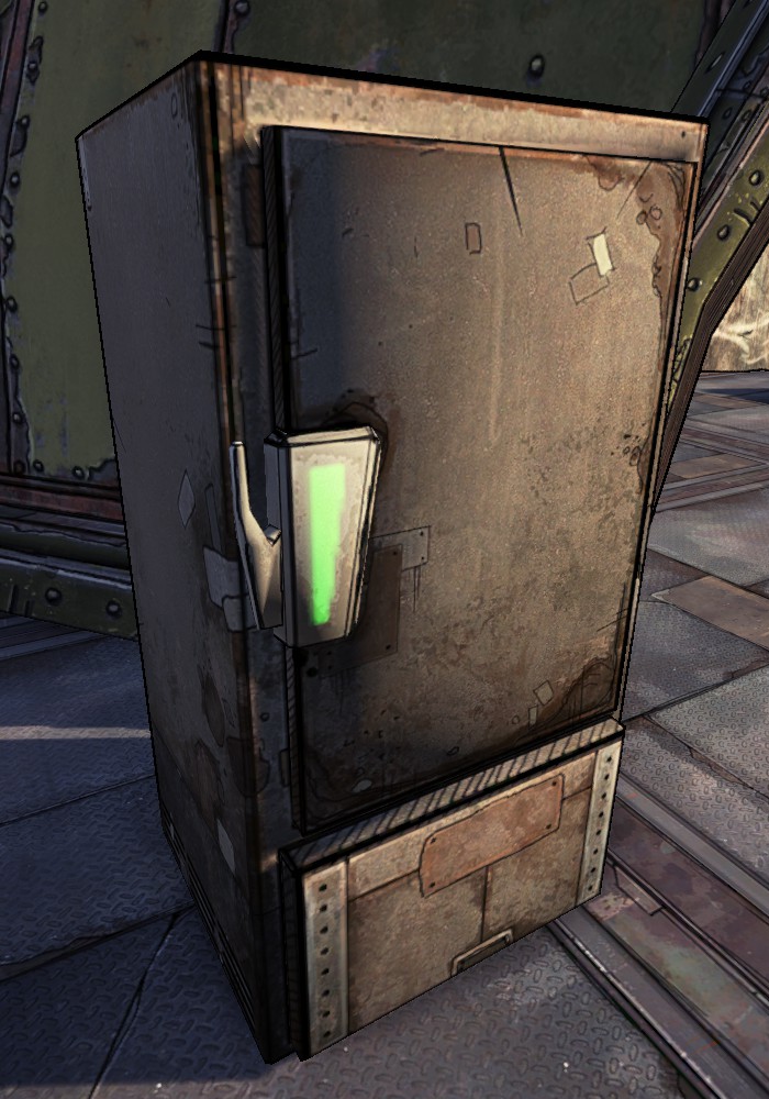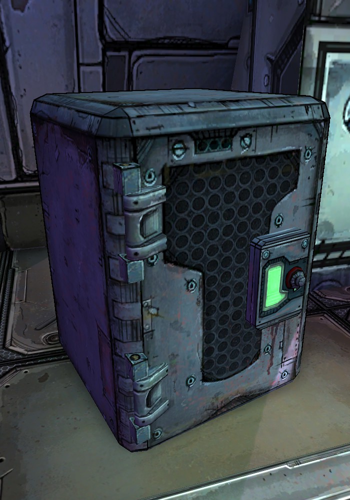 Introduced in Sir Hammerlock's Big Game Hunt, these odd storage closets can be found exclusively throughout the DLC. They are usually found in savage camps and spawn white to E-tech gear. Every time one is opened, it will also spew money, health and/or ammo.