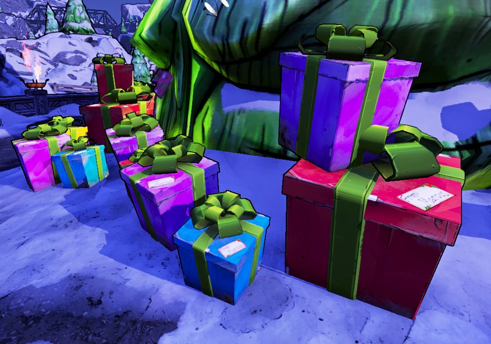 Added with The Secret Armory of General Knoxx, parcels contain a single ammo pack or grenade. Must be opened via the Use button; if shot, the contents of the box are destroyed.