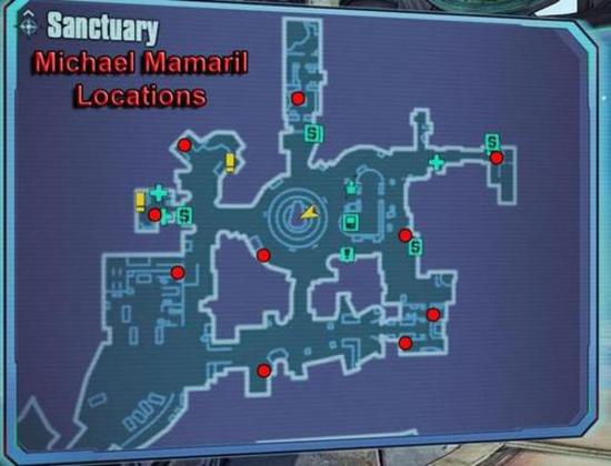 Michael Mamaril is an NPC in Sanctuary. He is noted for giving out blue or rarer loot, including E-tech weapons. He also plays an integral part in the Tribute to A Vault Hunter achievement/trophy.