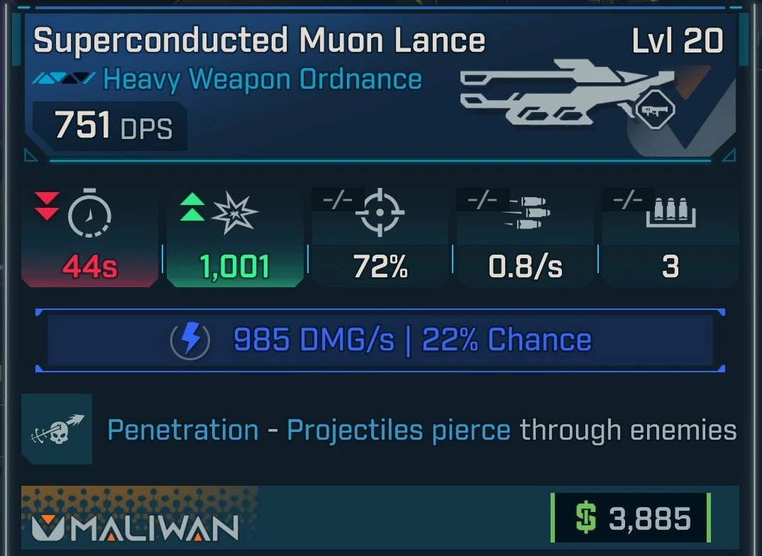 Muon Lance is common heavy weapon ordnance in Borderlands 4 manufactured by Maliwan. It is obtained randomly from any suitable loot source.