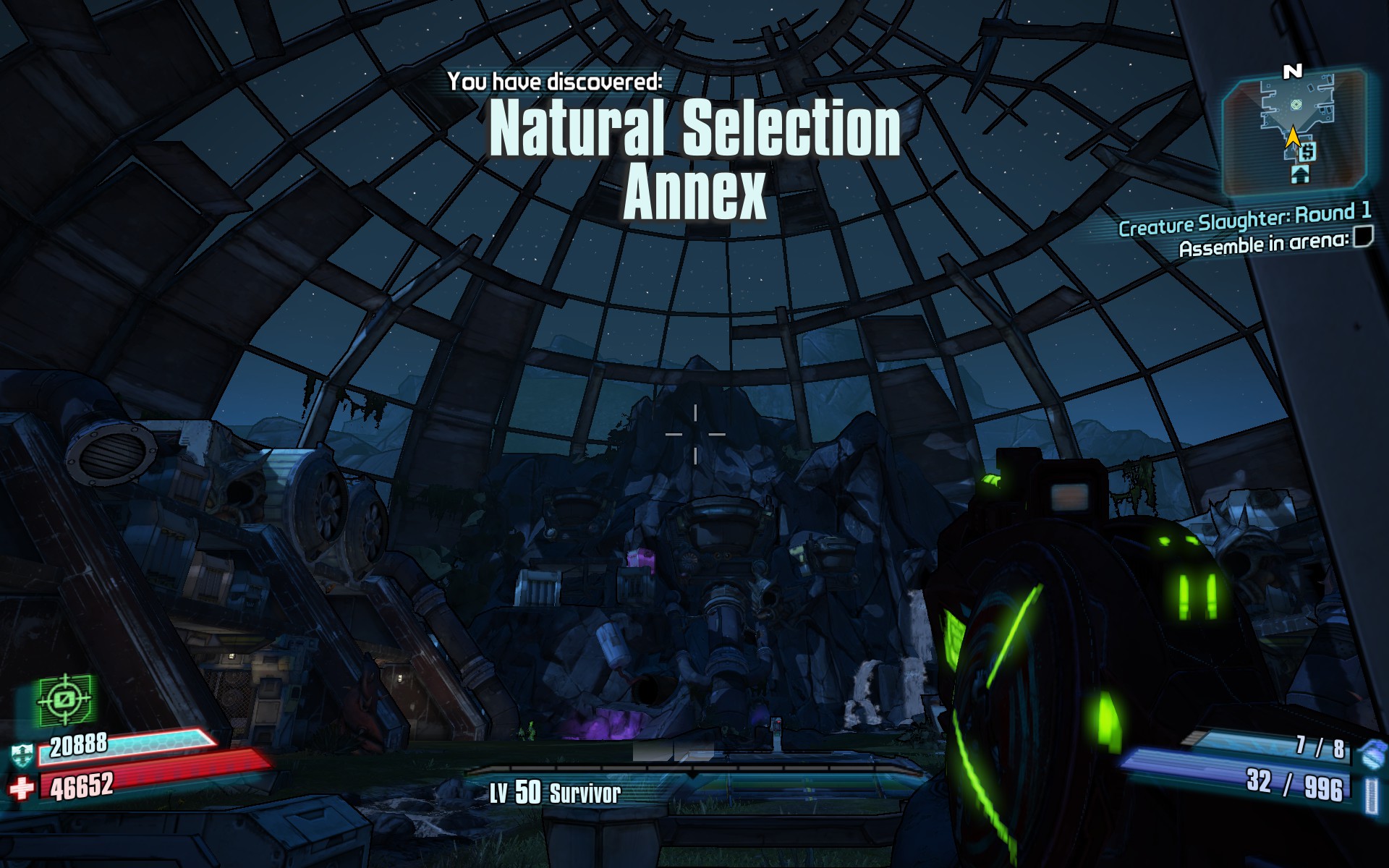 Natural Selection Annex from the Creature Slaughter Dome DLC is a Circle of Slaughter map. It is located to the right of the vending machines after entering the first structure in the Wildlife Exploitation Preserve with the collapsed telescope (eastern end of the map).