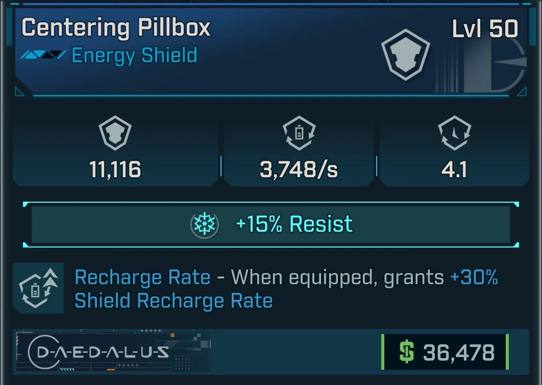 Pillbox is a common energy shield in Borderlands 4 manufactured by Daedalus. It is obtained randomly from any suitable loot source.