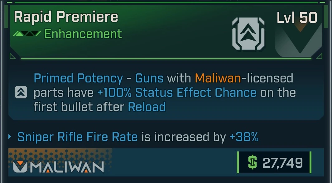 - Primed Potency – Guns with Maliwan-licensed parts have 100% Status Effect Chance on the first bullet after Reload.