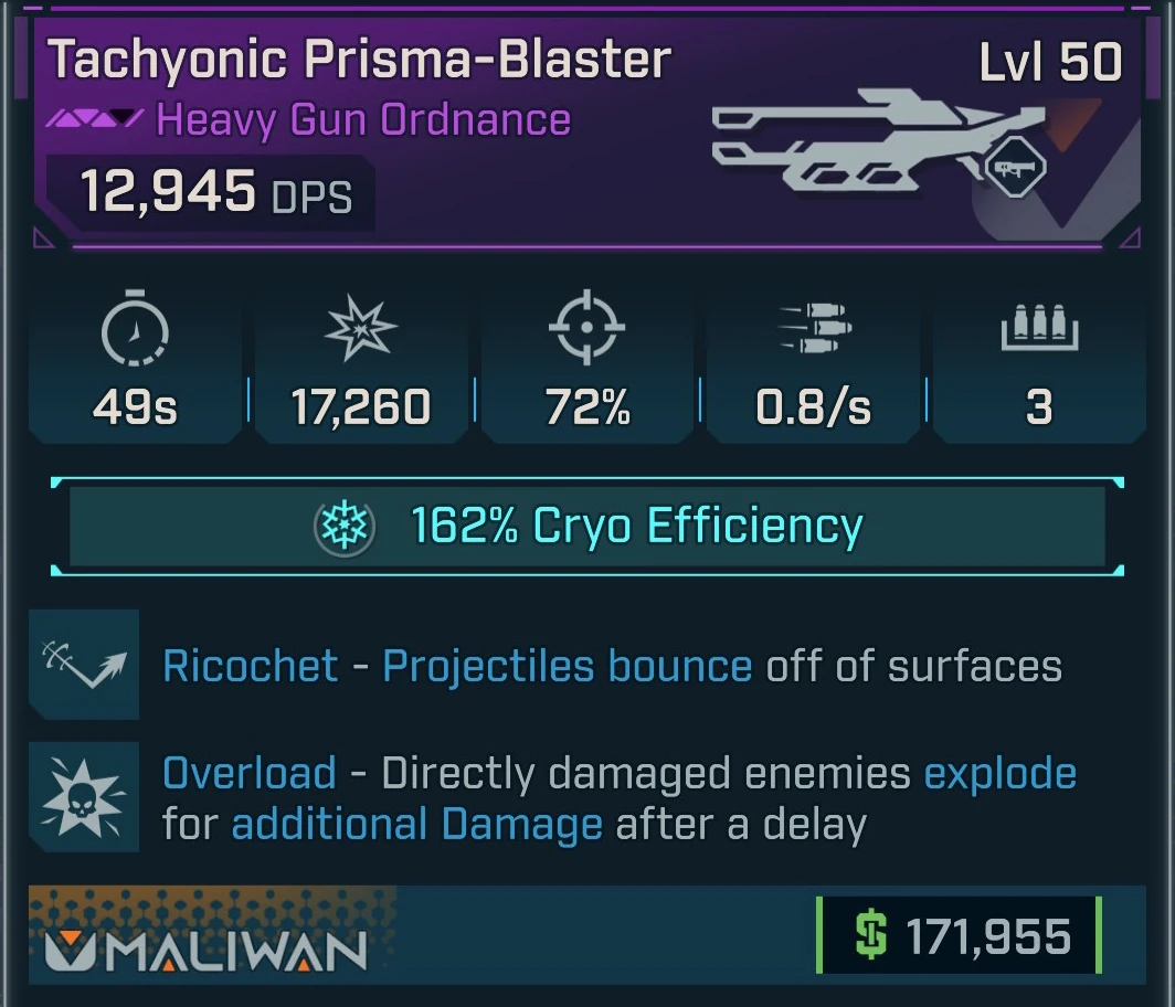 Prisma-Blaster is common heavy weapon ordnance in Borderlands 4 manufactured by Maliwan. It is obtained randomly from any suitable loot source.