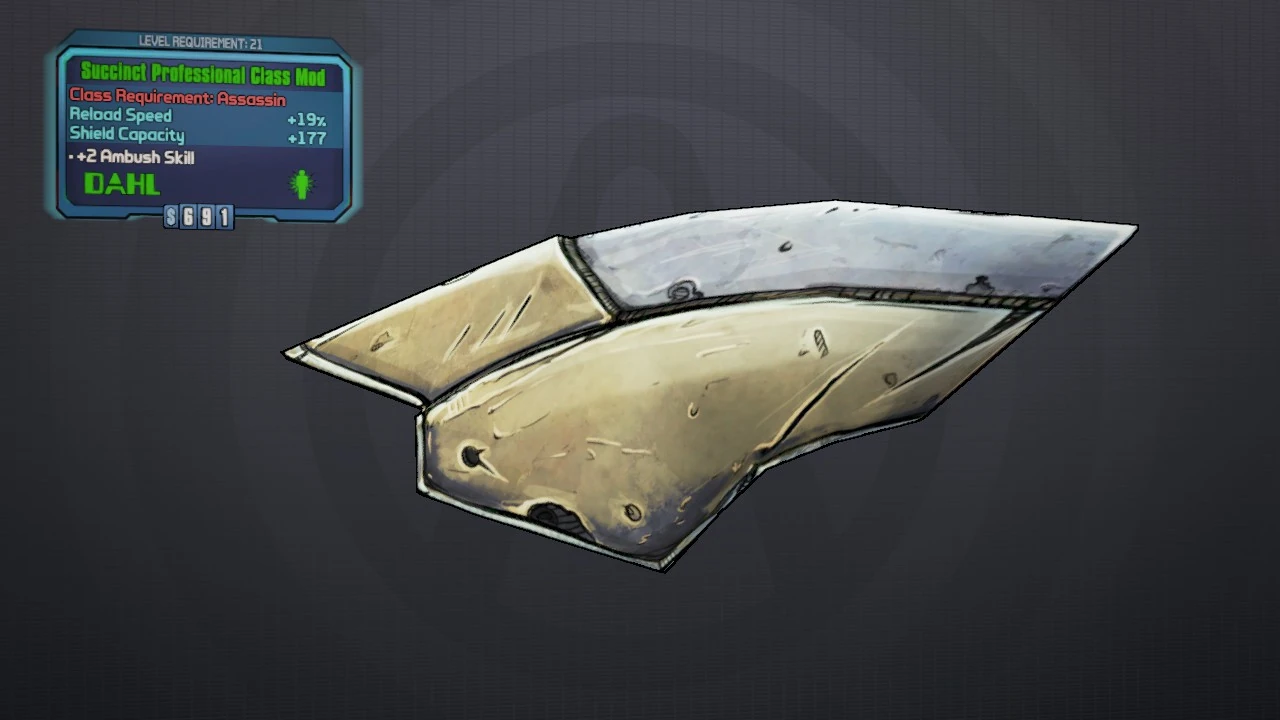 Professional is a Common class mod for the Assassin manufactured by Dahl. The Professional is obtained randomly from any suitable loot source.