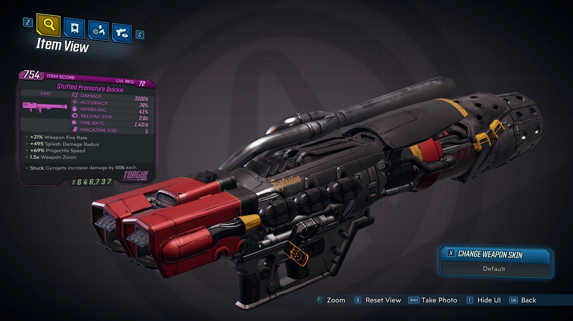 Featuring side-by-side double barrels, Quickie has the fastest fire rate but lowest damage per shot among all Torgue rocket launcher variants.