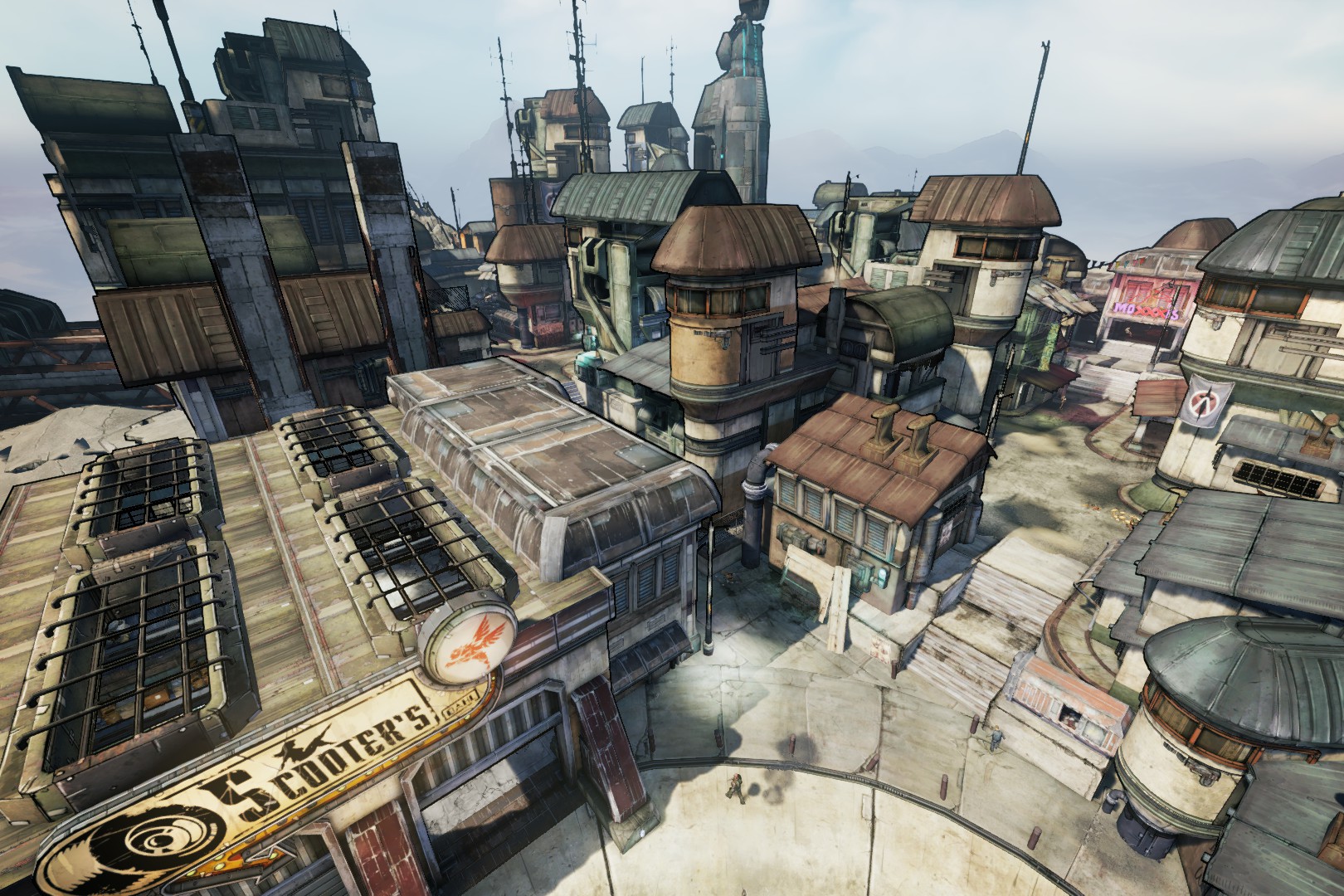 Scooter's is located on the west side of Sanctuary and is visible upon first entering the city proper. It is accessed via the vehicle doors or a door at the top of the steps to the right of the vehicle doors. A vault symbol can be found here.