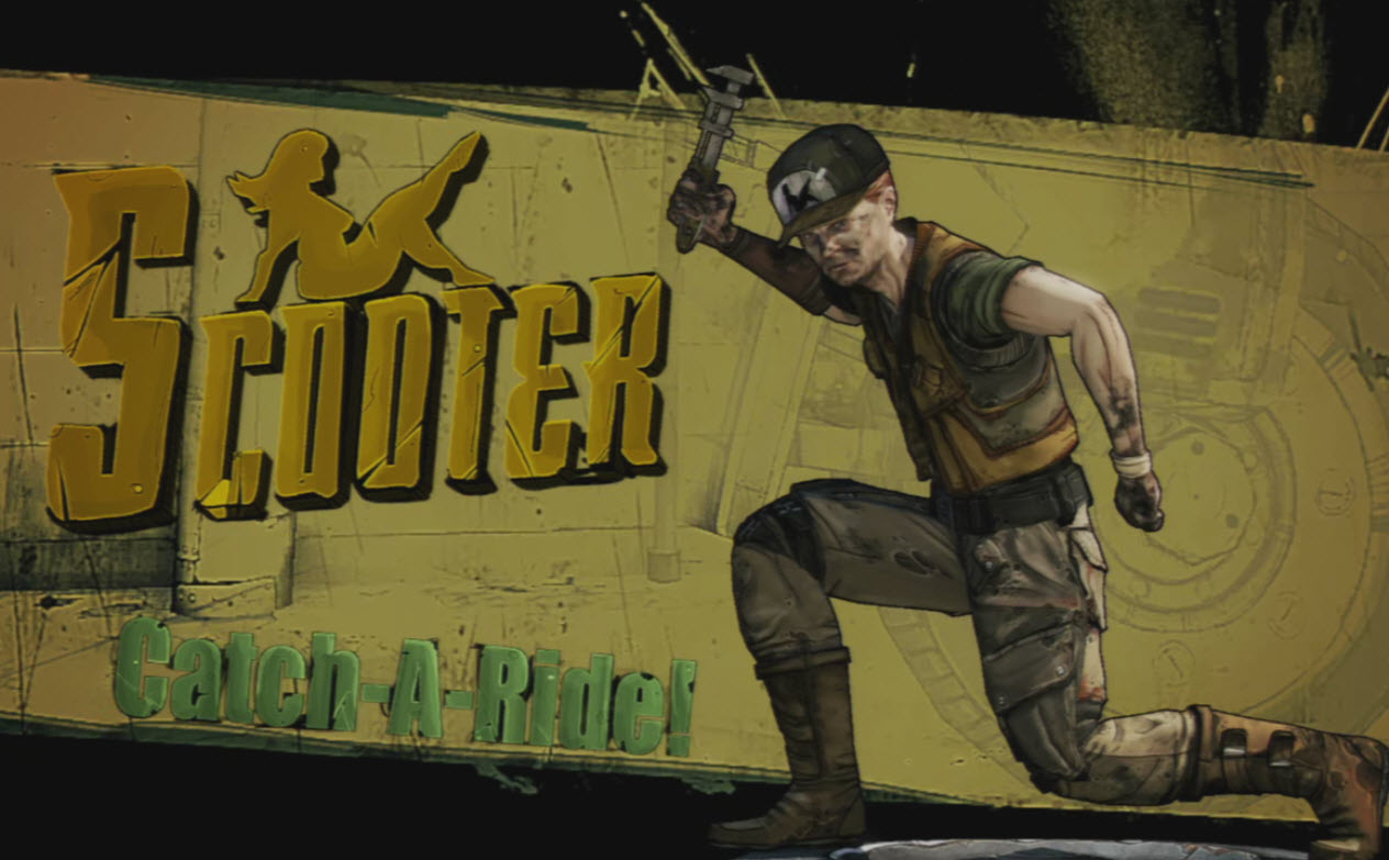 Scooter maintains the Catch-A-Rides and built the Outrunners that players can use to drive around Pandora. Once characters arrive in New Haven, he will also hand out some missions, including one to check on his old friend T.K. Baha.