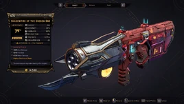 Shadowfire is a legendary submachine gun in Tiny Tina's Wonderlands manufactured by Feriore.