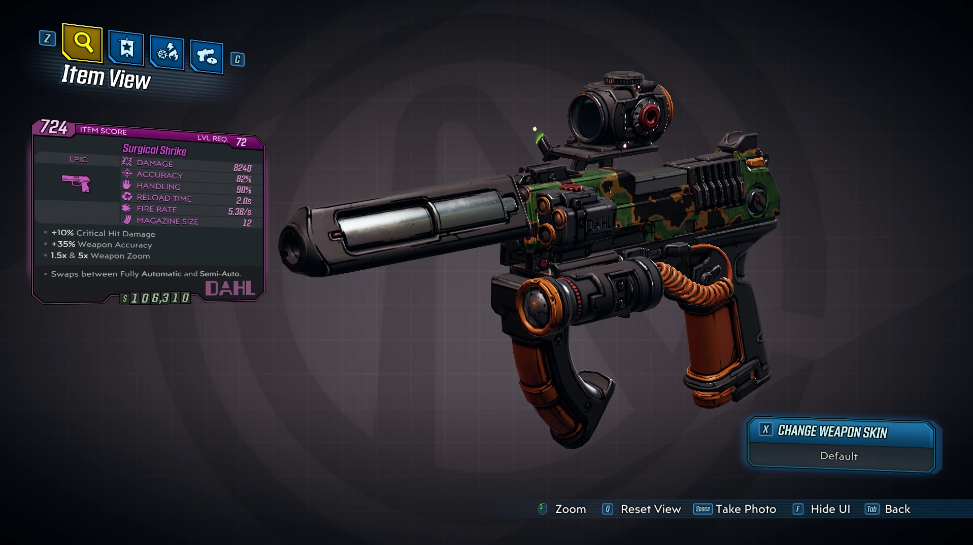 Shrike is the middle ground Dahl pistol, offering a balance between fire rate and damage, and the best accuracy and lowest recoil of common Dahl pistols. Shrikes which spawn with a burst fire firing mode fire in four shot bursts.