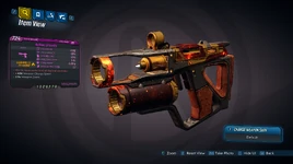 - -70% base damage. +7 Magazine size. Always incendiary.