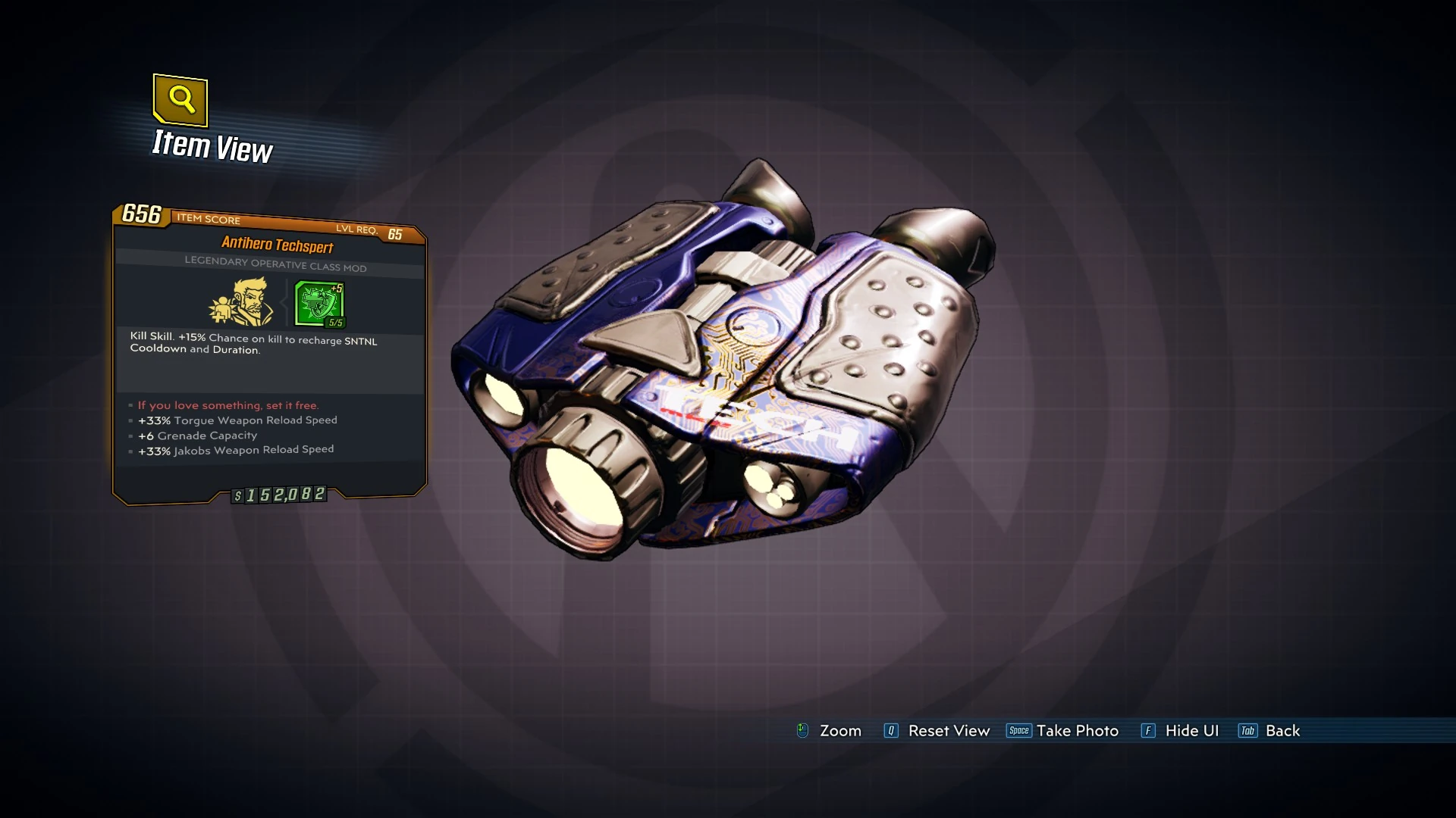 Techspert is a legendary class mod for Zane. It is obtained randomly from any suitable loot source, but has an increased chance to drop from Rachael, The Anointed located in Cathedral of the Twin Gods on Pandora.