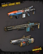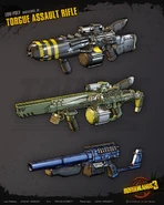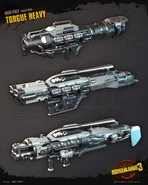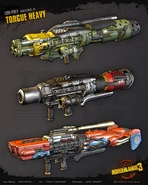Torgue guns can easily be identified by their black, grey or gunmetal paint schemes and heavy construction – a stark contrast to many other manufacturers who have much brighter color schemes for their weapons.