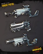 Torgue makes use of the new alternative fire with two modes: Impact and sticky, found on all Torgue weapons except those with an alien barrel and certain unique and legendary models. These two modes have different properties which change how the bullets behave and can be toggled for different situations.