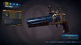 Wagon Wheel is a legendary pistol in Borderlands 3 manufactured by Jakobs. It is obtained randomly from any suitable loot source, but has an increased chance to drop from The Tink-Train located in Guts of Carnivora on Pandora. The Wagon Wheel can also be obtained with an increased chance from Crazy Earl on Sanctuary III by Loot-O-Gram trading.